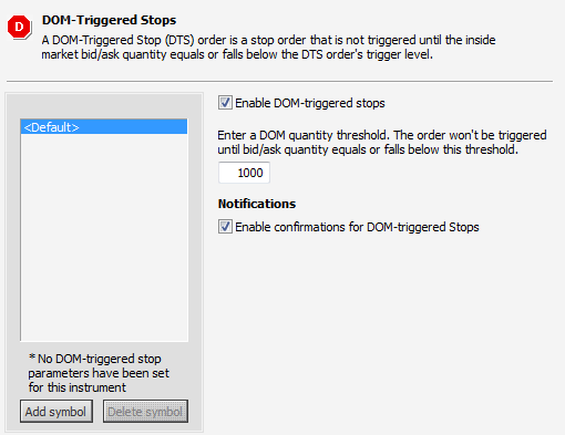 In order to place DOM-Triggered stop orders, you must select the Enable check box.