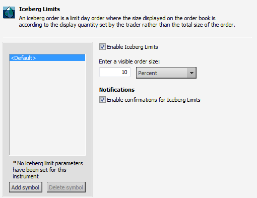 To receive confirmations related to Iceberg limits, click the Notifications check box.