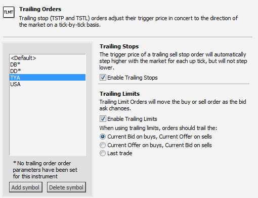 In order to place trailing stop or limit orders, you must select the appropriate Enable check box.