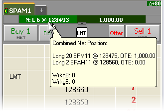 If related instruments are part of a strategy's position, an “N” is displayed near the position to indicate the combined net position: