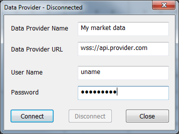 •User Name = User name provided by your market data provider. Required only if logon credentials are required by that provider.