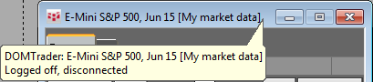 If a connection to a data provider has been established, the source is displayed in the long description of instruments in the title bars of CQG IC application windows, including charts, DOMTrader, Order Ticket, Order Desk, and Order Ticker. The long instrument description includes the data provider name, if provided, or the data provider URL. For example: CLEF5 – Crude Light (Globex), Jan 15 [Reuters].