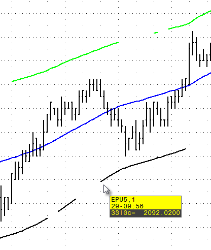 The ATM 3Sigma indicator dynamically calculates support and resistance in the direction of the selected time frame’s current trend.  If in bull market it produce resistance lines.  In a bear market it produces support lines.