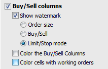 Select this check box to highlight the buy and sell columns with other colors, like this: