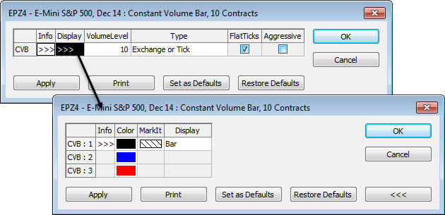 Each chart type has a set of associated parameters. This image shows the parameters for CVB charts:
