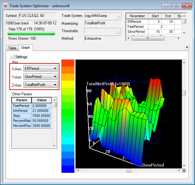 3. Set up the XY-Axis with the parameter you put a range on, and set up the Z-Axis with the profit parameter you would like to maximize or minimize.