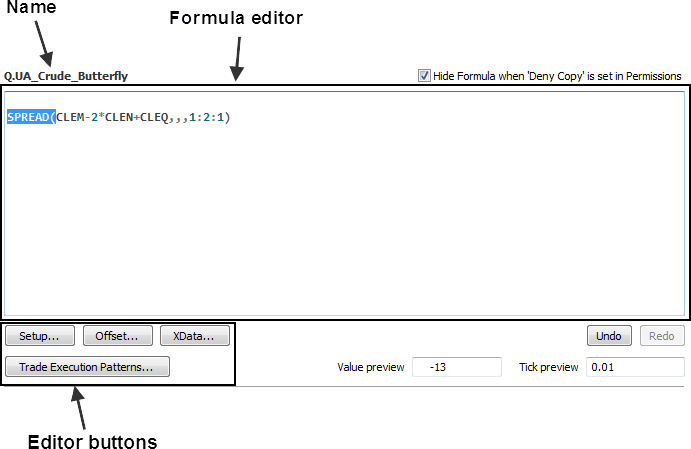 •If you want to hide a formula that is not allowed to be copied, select the Hide Formula check box above the Formula Editor.