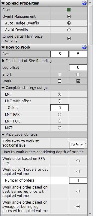 Work order based on BBA Work up to this number of orders to get required volume Work single order based on leaning leg price with required volume Work single order based on average of leaning leg prices with required volume |