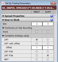 Tip: To set sniper mode in an attempt to fill the illiquid month first and then hedge when the first leg is filled: unselect all symbols, and choose LMT FOK for the weak leg.