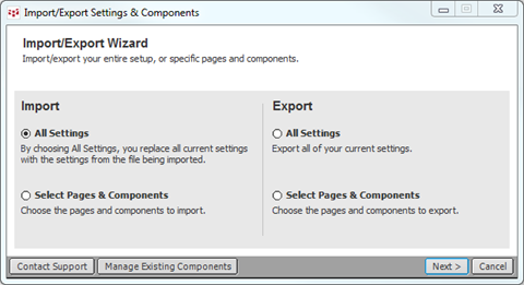 In addition, by selecting from the Import/Export Wizard “All Settings” you can import and export all of your settings by creating a zip file.