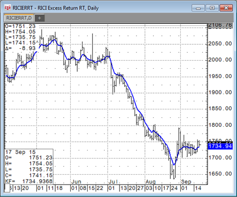 Kalman Filter is a recursive algorithm invented in the 1960s to track a moving target from noisy measurements of its position and predict its future position. Applying the concept to pricing data, it is used to detect smooth trend lines within the data that represent the true value of the market before being disturbed by market noise.