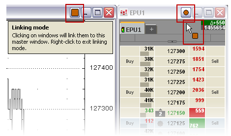 Linking windows results in one master window and at least one child window. When you change a symbol, price, or account on the master window, the same change is made on child windows.