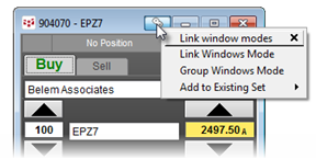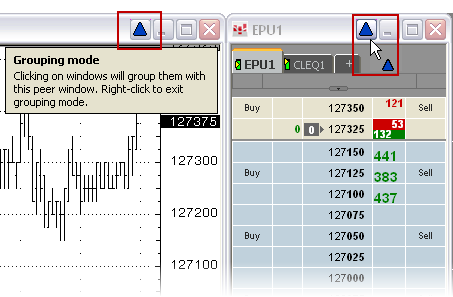 Grouping windows results in sibling windows. When you change a symbol, price, or account on any sibling window, the same change is made on all of the other sibling windows.