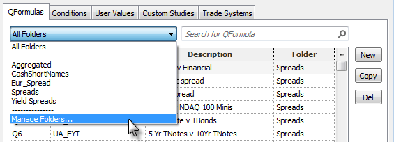 Click the drop-down arrow, and click Manage Folders to open the Manage Folders window. (You can also right-click the formula list or click the Folders button on the Utility toolbar.)