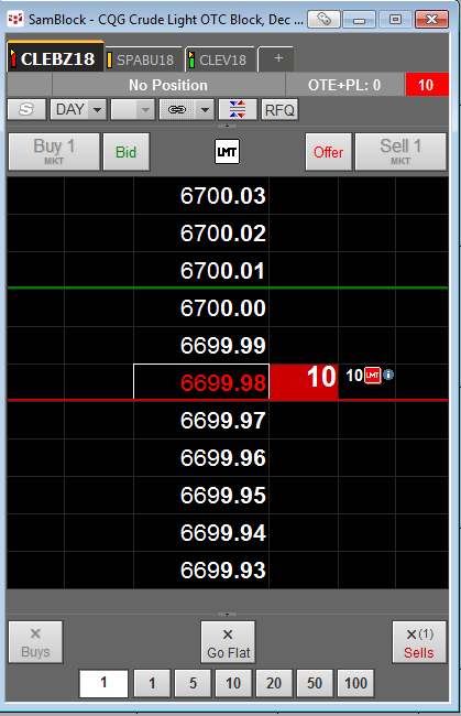 Once an order is submitted in response to initial RFQ, it will be visible in the DOM ladder.