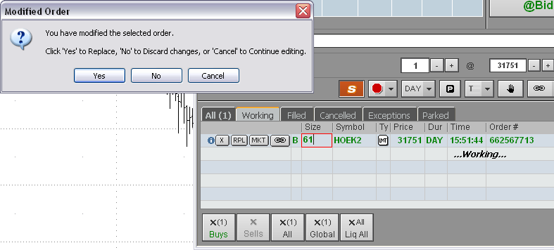 2.  Click the Size field on the Orders and Positions area. A red outline appears, letting you know that field is in focus.