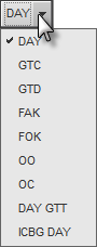 If you select GTD, a date field is also displayed. If you select DAY GTT, a time field with seconds is displayed.