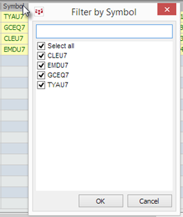 The filter window associated with Strategy Manager ignores the symbol selected on the filter pane.