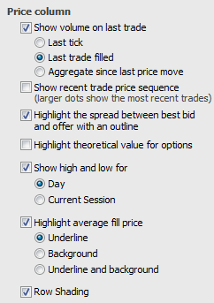 Average fill price can be indicated with a line, shading, or both. To hide the highlighting, clear the check box. |