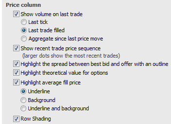 The average fill price can be indicated with a line, shading, or both. Clear the check box to turn off highlighting.