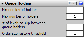 Queue holders (stacked orders) are additional orders placed in the queue at specified price levels away from the initial working order. Several parameters apply specifically to these stacked orders.