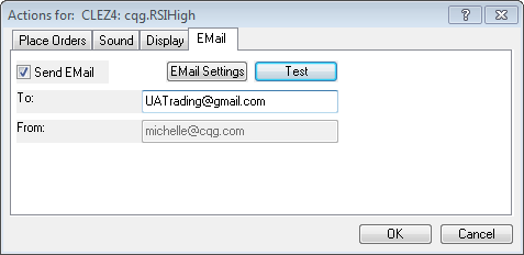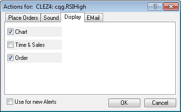 Click the Trade After Close check box to allow trade actions to remain active after the end of the trading day, so that trades can be executed during overnight trading. This ensures that if the alert is active, then the order is active also, regardless of the trading session. If this parameter is turned off, trade actions are cancelled prior to overnight trading (because those orders are DAY orders), even though the alert remains active.