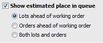 When an exchange does not offer full transparency of the order book CQG offers an estimate regarding where your orders are in the queue to be executed at a given price. Selecting this check box will show the estimated place in the queue for working orders.