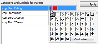3. Optionally, modify the display. Click the symbol to open a symbol; click the colored square to open a color palette: