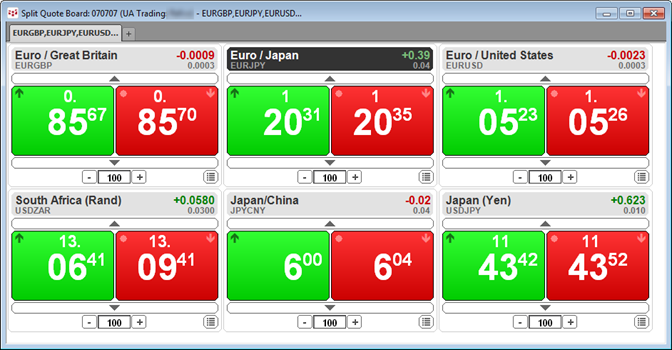 While ideal for FX traders, Split Quote Board can be used with any symbols for any market.
