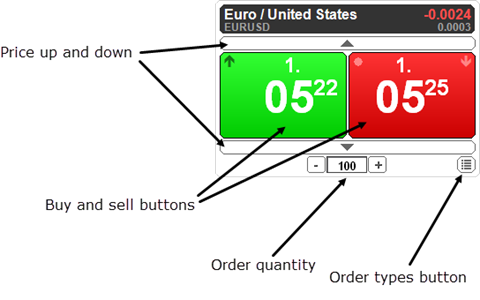 Buttons include an arrow that indicates whether the market (adjusted market price) is above or below the selected price. If the adjusted market price equals the selected price, no arrow is displayed.