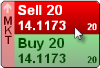 In market mode, the buy and sell buttons have a single pane that displays best bid or best ask.