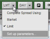 This menu provides a quick way to make changes. You can also choose the order type for the second working leg on the parameters window.