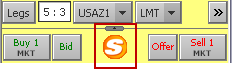 Click the Legs button to display (or hide) an Order Ticket, Order Desk, DOMTrader, or Split DOMTrader for each of the spread legs in addition to the window for the spread. Gray = off. Orange = on.