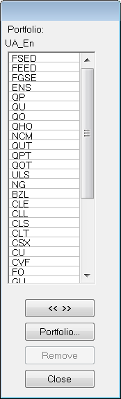 If you want to add some, but not all, portfolio symbols or if you want to remove symbols from the portfolio before adding it, click Open Portfolio Window to open this abridged version of the Define Portfolio window: