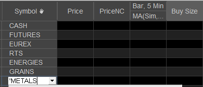 Type an apostrophe followed by the comment you wish to add. Comment cells are commonly used to organize symbols. You can separate rows by asset class, exchange, or market. In this image, “metals” is being added as a comment: