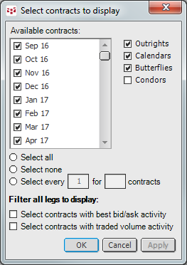 •Select the spread strategies to be displayed: Outrights, Calendars, Butterflies, or Condors.