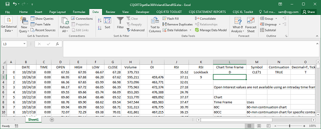 The XL Time Series study allows you to build models in Excel and import the outputs on a real-time basis into CQG for charting, auto trading and more. As the data in updates in the specified range of cells, the cell values in the model will update in real time in CQG as long as the worksheet is open and CQG is running..