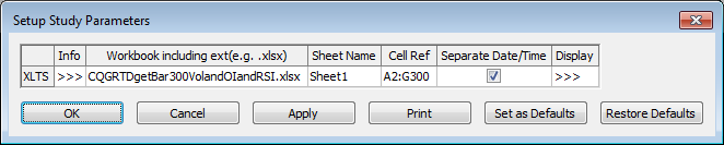 The XL Time Series study is included in CQGIC subscriptions enabled for CQG Trading, or Spreader, as well as CQG Spreader systems. The XL Time Series Study is available to base CQGIC subscriptions at additional cost.