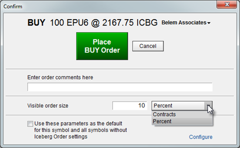 An iceberg order is a limit day or GTC order that has both a total quantity and a display quantity that is shown publicly on the order book. These orders are supported on Globex, Ice, Montreal, and BrokerTec.
