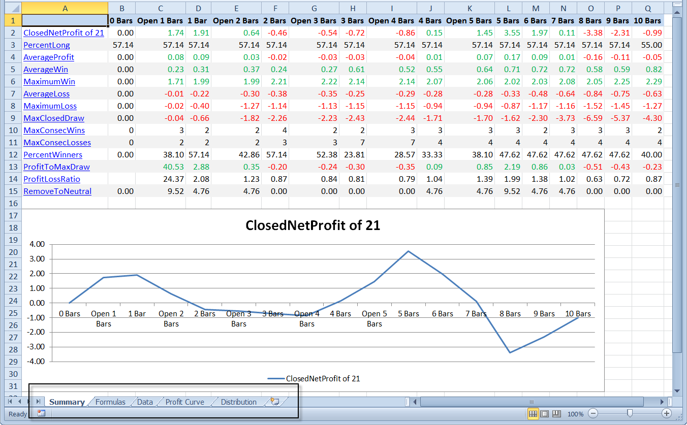 Shows table of distribution data calculated dynamically depending on selected bars out in Distribution worksheet.