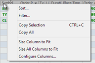To filter data, right-click the column heading to open the filter window. Select the check boxes for the data to include in the filter. For long lists, it may help to use the search field to narrow down the list of choices. The search field is also an effective tool for finding a particular order.