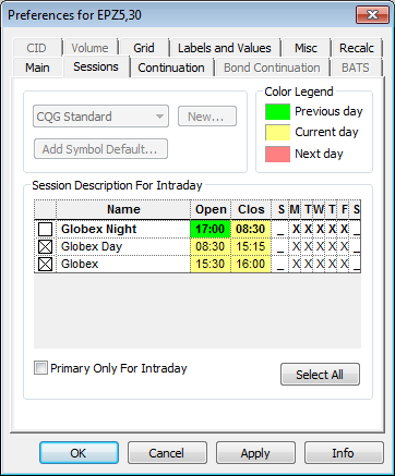 Click the Primary Only For Intraday check box (at the bottom of the window) to display only the primary session on the chart.