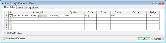 In order to set up a Place Order action, you must be logged on to trade with an active trading account.