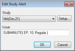 Double-click or right-click this field to select the study and issue to be used to trigger the alert.