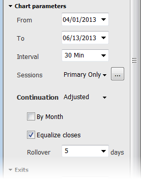 Values: No continuation, Standard, Adjusted, Active Read more about continuation types, by month, equalize close, and rollover. |