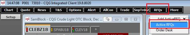 Traders can view their RFQ’s and respond to others in the Active RFQ window