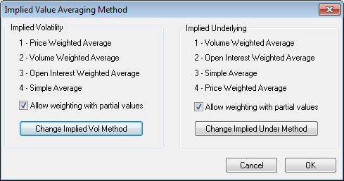 2. Click Weights. The Implied Value Averaging Method window opens. The current order of values is displayed on the window.
